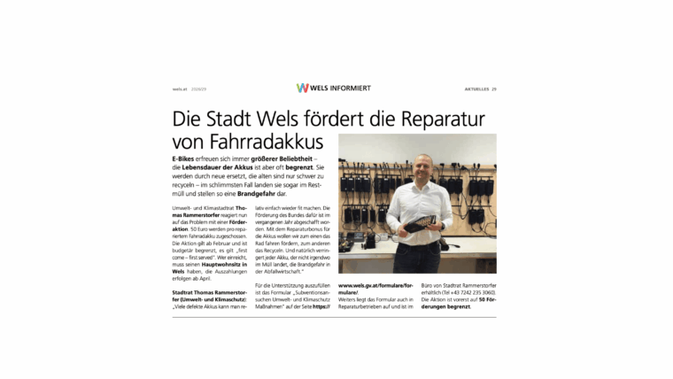 Gute Nachrichten für alle E-Biker:innen in Wels: Die Stadt Wels unterstützt aktuell die Reparatur von E-Bike-Akkus mit 50 € Zuschuss. Wenn dein Akku spürbar weniger Reichweite hat oder unter Last schnell einbricht, kann sich eine E-Bike Akku Reparatur Wels jetzt besonders auszahlen. Und ganz…